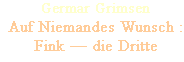 ____________________________________________________________________________________ Redaktion ist echt betrübt, daß die überwältigende Materialfülle für dieses eine Mal es erheischte, die bei ihr, der Redaktion, so überaus beliebte Kolumne Aus den Dunkelkammern religiöser Wahnideen entfällt. Sie verspricht umso erregenderen Stoff für die nächste Ausgabe. Niemand möge den unzulässigen Schluß ziehen, daß etwa die Intensität der redaktionellen Verachtung Götes größer sei als die ihrer emotionalen Bindung an religiöse Wahnideen. Allein, Göte ist manchmal kürzer. |